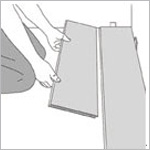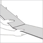 这时最好站在已经铺好的地板上面,用两只手轻微的抬起刚刚铺好的一行板(有可能也会将同一行的板也抬起),将地板推紧。