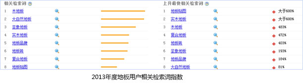 从百度"地板"相关检索词统计表可以看出,主要分为两类: