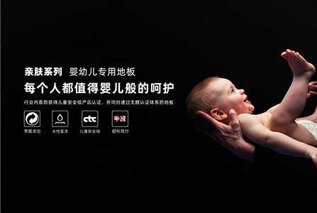 嗅觉专研:行业首获“儿童安全级产品认证”和“无醛认证”双认证的地板产品。